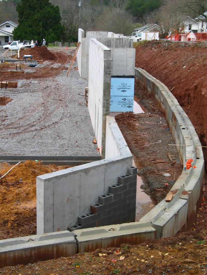 In the above photo showing solid concrete poured foundation walls at Johnson University in Knoxville, TN